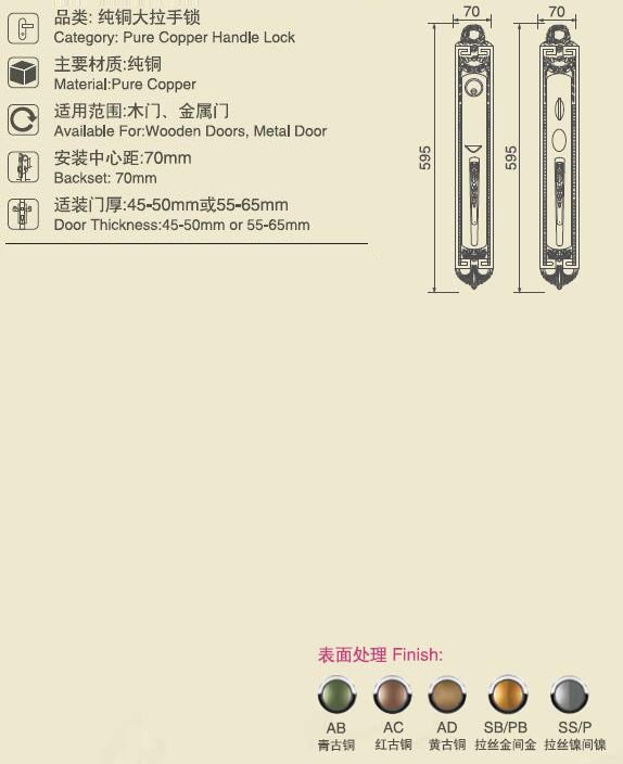 M系列纯铜大门锁
